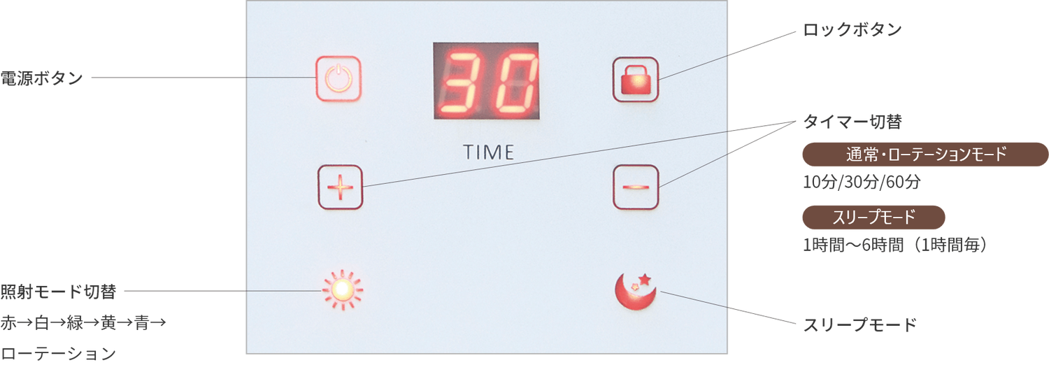 6色の光を放射するLEDを242個搭載。顔全体に広く放射することで、悩みにアプローチします。